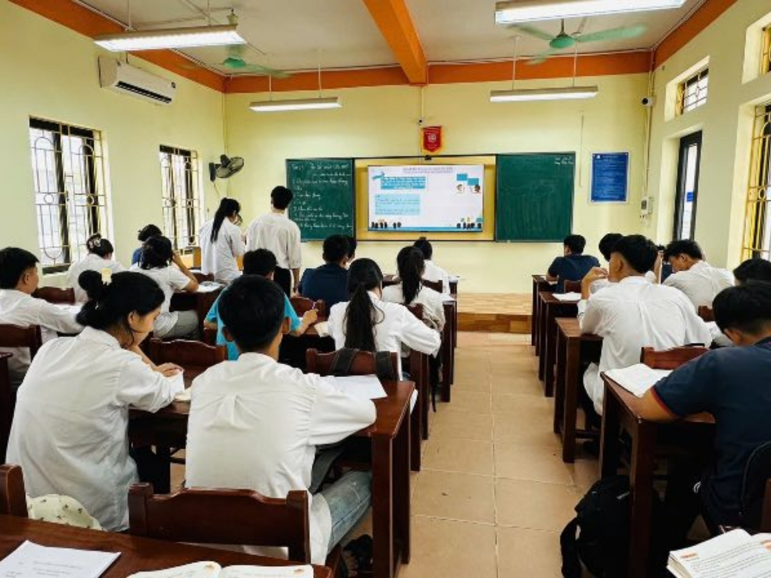 Tại Trường THPT Đặng Tiến Đông, học sinh lớp chất lượng cao được trải nghiệm môi trường học tập hiện đại với đội ngũ giáo viên giàu kinh nghiệm, tận tâm. Giáo viên hướng dẫn học sinh không chỉ giải bài tập mà còn khơi dậy khả năng tư duy sáng tạo và giải quyết vấn đề.